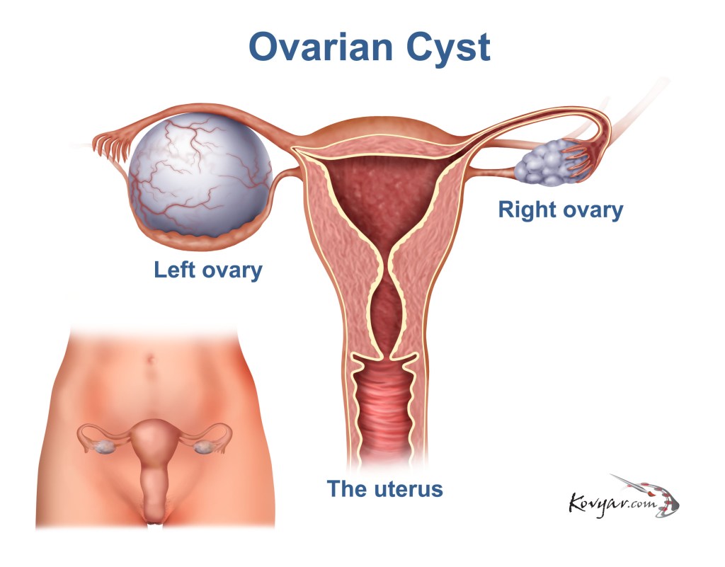 Women have two ovaries — each about the size and shape of an almond. These ovarian cysts are fluid-filled pockets in or on your ovary. They’re common, many women will have an ovarian cyst at some point during their live.